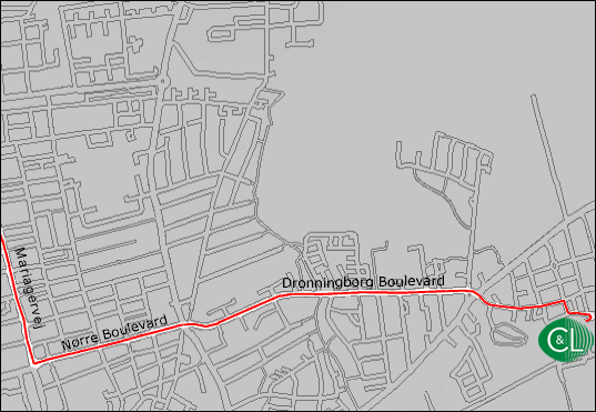 - Fortsæt ligeud ad Dronningborg Boulevard efter lysreguleringen Hadsundvej/Nørre Boulevard/Dronningborg Boulevard